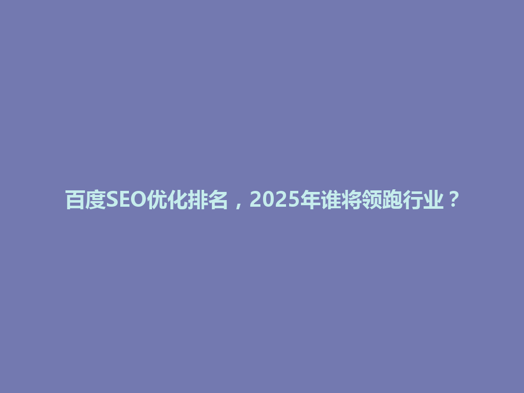 2025年,能够在百度SEO优化排名中领跑的企业将是那些能够适应算法变化、重视技术SEO、并积极进行内容营销的先锋。只有全面提升网站质量和用户体验,企业才能在竞争中保持领先地位。